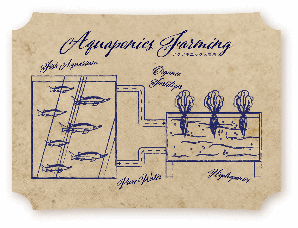 アクアポニックス農法は、お魚を育てることで発生するうんちを植物の栄養に変えてお野菜を育てます。正に「お魚が育てたお野菜」です。
